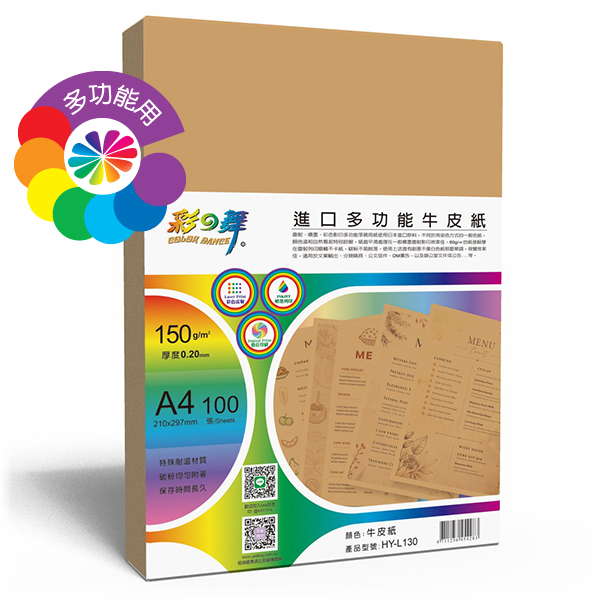 HY-L130150g A4 100入 進口多功能牛皮紙規格
