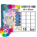 U6815(15)15格 3合1白色標籤(100入/1000入)規格