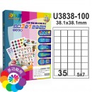 U3838(35A)35格 3合1白色標籤(100入/1000入)規格