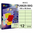 U6620-50G12格 進口3合1彩色標籤(嫩綠色)規格