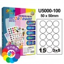 U5000(15X)15格圓形 3合1白色標籤(100入/1000入)規格