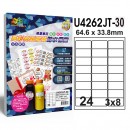 U4262JT-3024格 噴墨高彩亮面膠質防水標籤 (24E)規格
