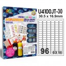 U4100JT-3096格 噴墨高彩亮面膠質防水標籤 (96)規格