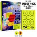 U6808-100 螢光色彩標24格橢圓形 進口3合1彩色標籤(2色可選)規格