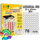 U2500GL-100(促銷)70格圓形 進口彩雷亮面標籤 (70)規格