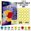 U4500-100 彩標15格圓形 進口3合1彩色標籤(多色可選)規格