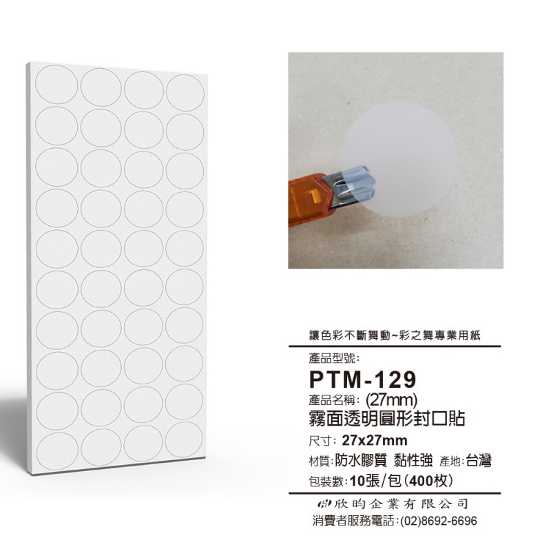 PTM-129霧面透明圓形封口貼(27mm) 400枚/包 (空白無印刷)規格
