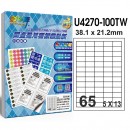 U4270-100TW(65A)65格 國產通用型白色標籤(100入)規格