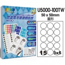 U5000-100TW(15X)15格圓形 國產通用型白色標籤(100入)規格
