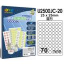 U2500JC-2070格圓形 噴墨光面透明標籤 (70X)規格