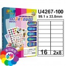 U4267(16D)16格 3合1白色標籤(100入/1000入)規格