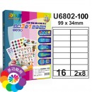 U6802(16E)16格 3合1白色標籤(100入/1000入)規格