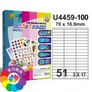 U4459(51)51格 3合1白色標籤(100入/1000入)規格