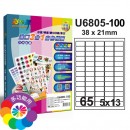 U6805(65C)65格 3合1白色標籤(100入/1000入)規格