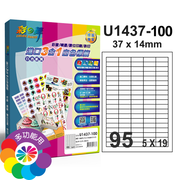 U1437(95)95格 3合1白色標籤(100入/1000入)規格