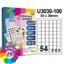 U3030(54)54格 3合1白色標籤(100入/1000入)規格