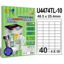 U4474TL-1040格 進口雷射亮面膠質防水標籤 (40B)規格