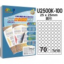 U2500K-100(客製)(70X)70格圓形 特殊白色遮蓋標籤規格