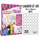 U6809JT-3035格 噴墨高彩亮面膠質防水標籤 (35X)規格