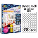 U2500JT-3070格 噴墨高彩亮面膠質防水標籤 (70X)規格