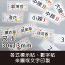 各式標示、數字貼紙100枚標示、數字貼紙(客製化文字內容)規格