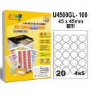 U4500GL-100(促銷)20格圓形 進口彩雷亮面標籤 (20X)規格