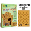 U4500YH-100(促銷)20格圓形 進口3合1黃牛皮標籤 (20X)規格