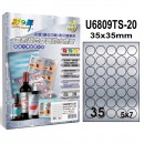 U6809TS-2035格圓形 雷射銀色膠質防水標籤 (35X)規格