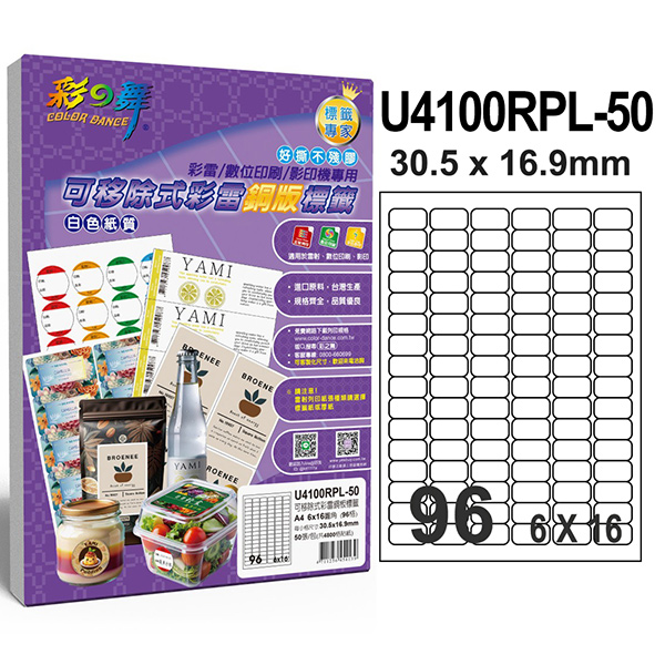 U4100RPL-5096格 可移除式彩雷銅版標籤 (96)規格