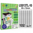 U3013TL-10102格 進口雷射亮面膠質防水標籤 (102)(姓名貼格式)規格