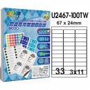 U2467-100TW(33C)33格 國產通用型白色標籤(100入)規格