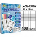 U6612-100TW(108)108 國產通用型白色標籤(100入)規格